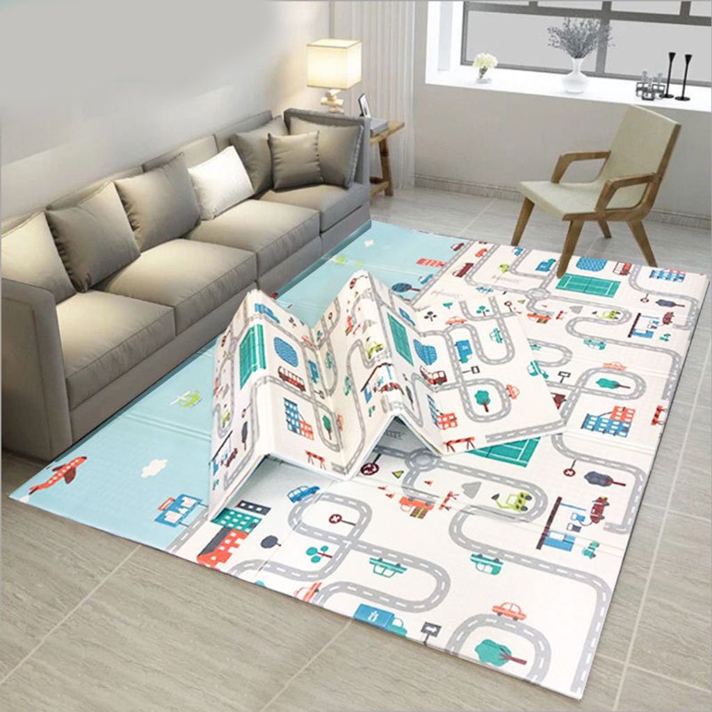 Tapete de Atividades Para Bebes Dobrável Dupla Face 200x150 Emborrachado Infantil Tatame Urso Cidade Pista