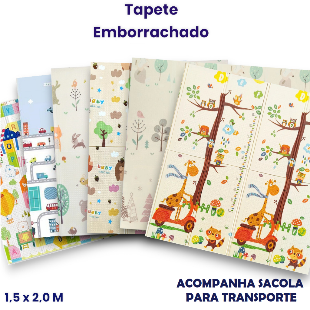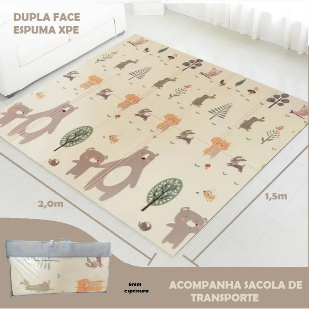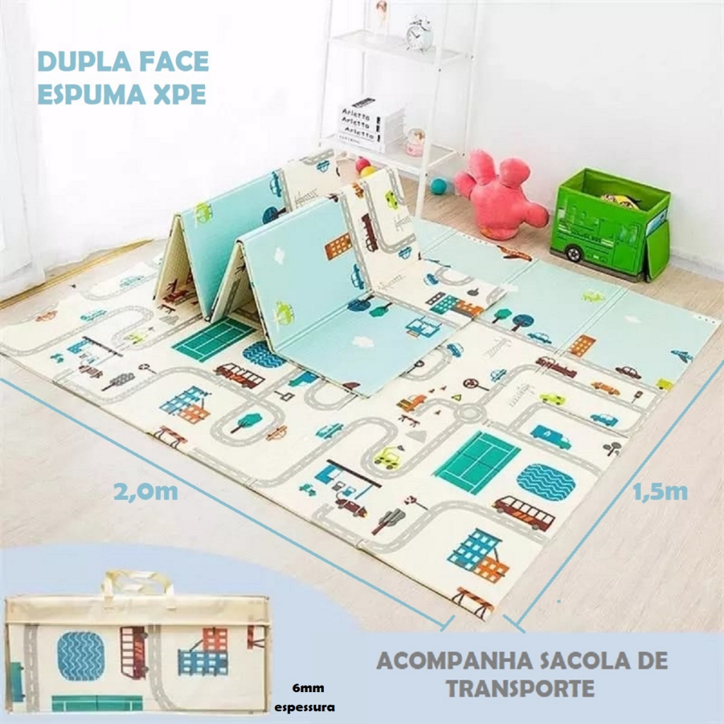 Tapete Infantil Emborrachado 6mm Dobrável Dupla face Interativo Bebe Educacional 2,0 x 1,5 M