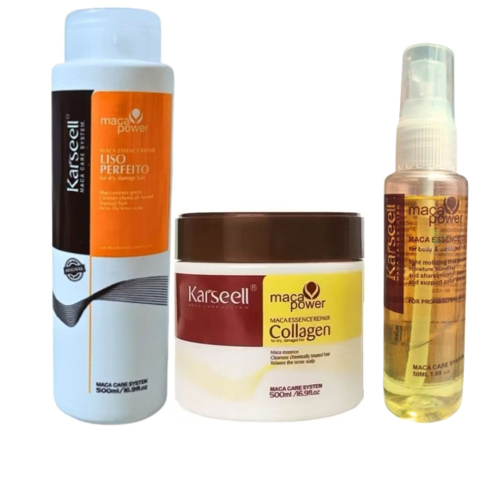 KIT Mascara Karseell Collagen Tratamento Capilar 500g + Shampoo + Condicionador + Óleo Maca Essence
