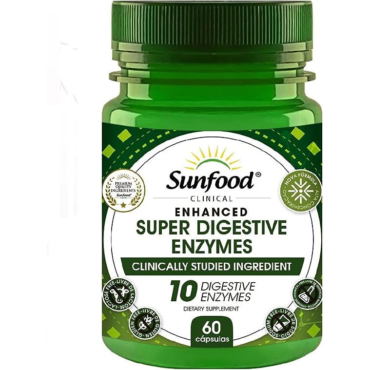 Super Digestive Enzymes 60 cápsulas Sunfood Clinical - Reduz azia e prisão de ventre