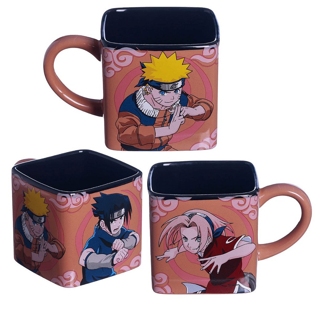 Caneca Naruto Sasuke Sakura Time Sete 7 3D Cubo Quadrada Cerâmica 300ml Oficial VIZ