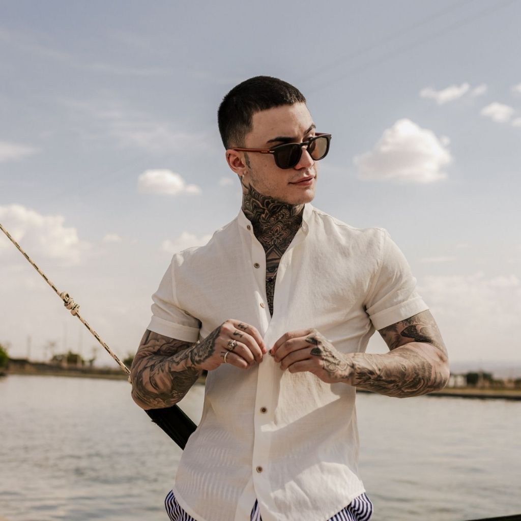 Camisa manga curta social masculina de linho com gola padre - camisa para verão - camisa fresca