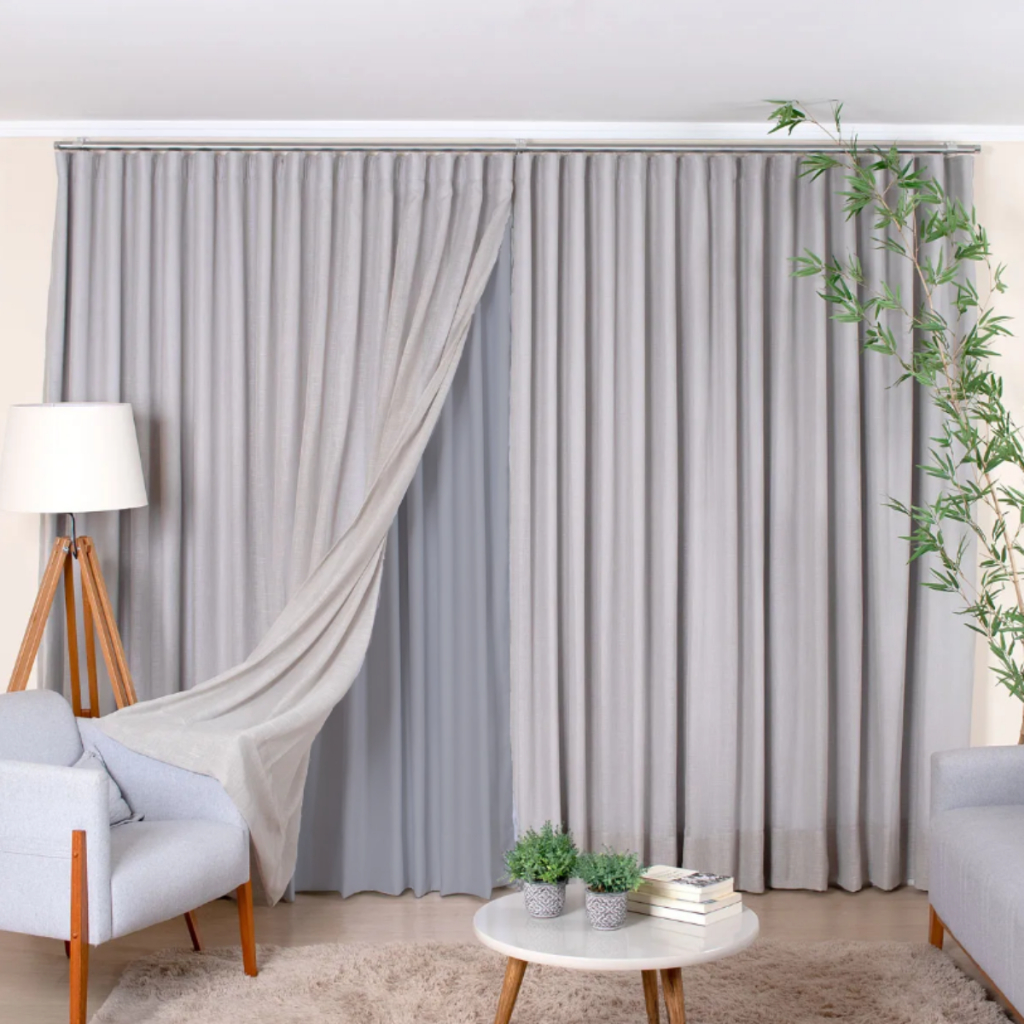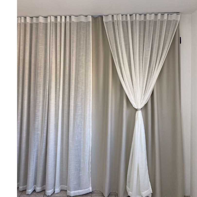 Cortina Voil Linho com Forro Blackout Largura 4m de Largura TRILHO SUÍÇO DUPLO MAX