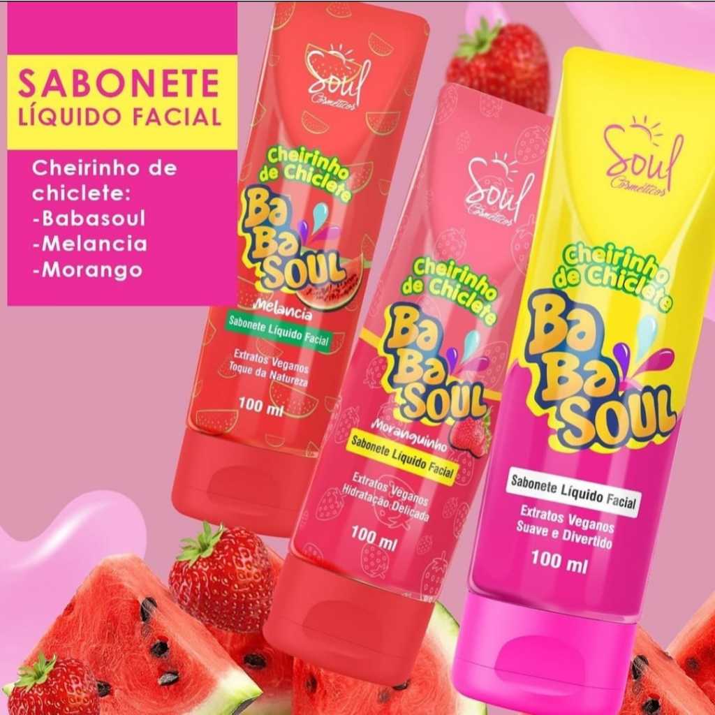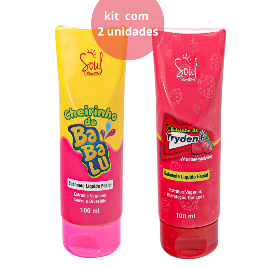 Kit Com 2 Sabonetes Facial Cheirinho de Babalu e Moranguinho Soul Cosméticos 100ml