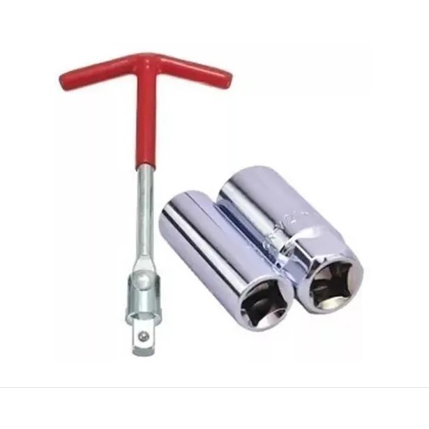 Chave de Vela Longa T com 2 soquetes 16mm e 21mm Articulada - Ferramenta para trocar velas de ignição Carro moto barco