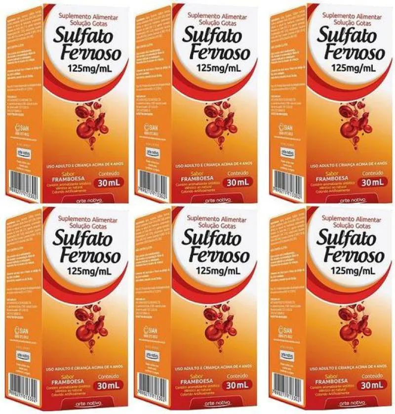 KIT C/6 SULFATO FERROSO GOTAS 125MG 30ML - ARTE NATIVA