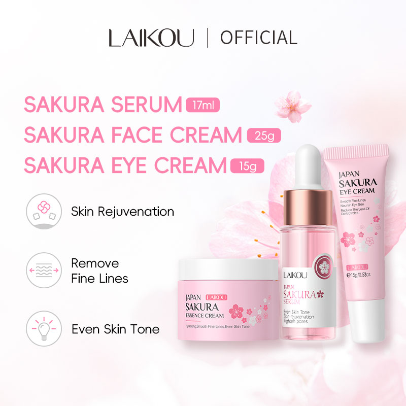 LAIKOU Sakura Skin Care Set Cherry Blossoms Serum Hidratante Anti-Rugas Reduzir Bolsas Para Os Olhos Sem Croeldade