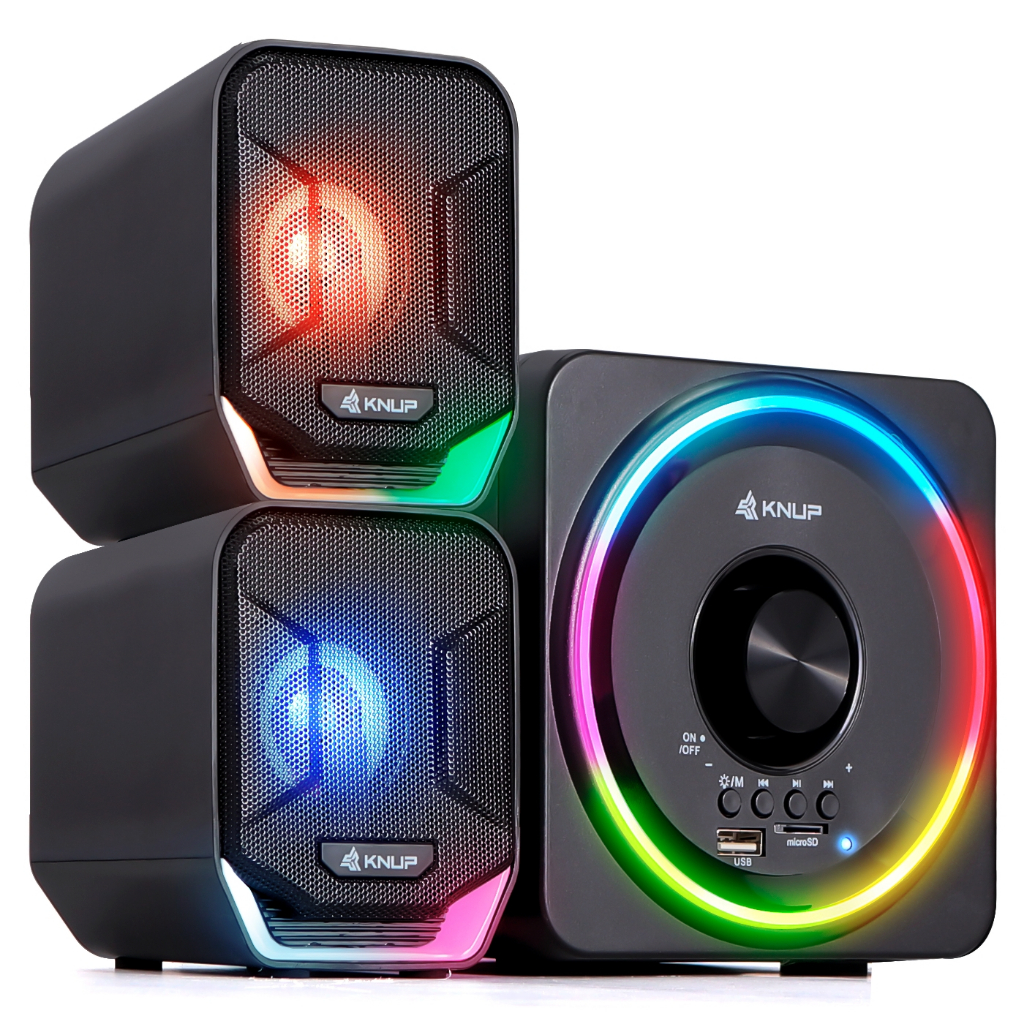 Caixa de Som Gamer Subwoofer Bluetooth 16W Rms Real Iluminação Led Rgb USB Pc Computador Notebook Celular Tablet Tv Smart