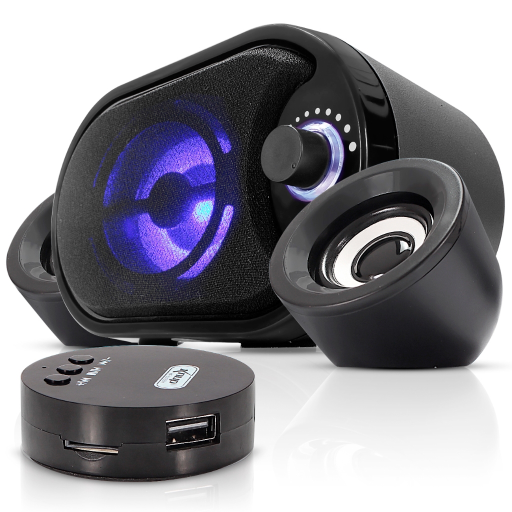 Caixa de Som Subwoofer Gamer Bluetooth 11W Rms Real Estéreo Iluminação Led Azul P2 Usb Pc Computador Notebook Mac Celular Tv Smart