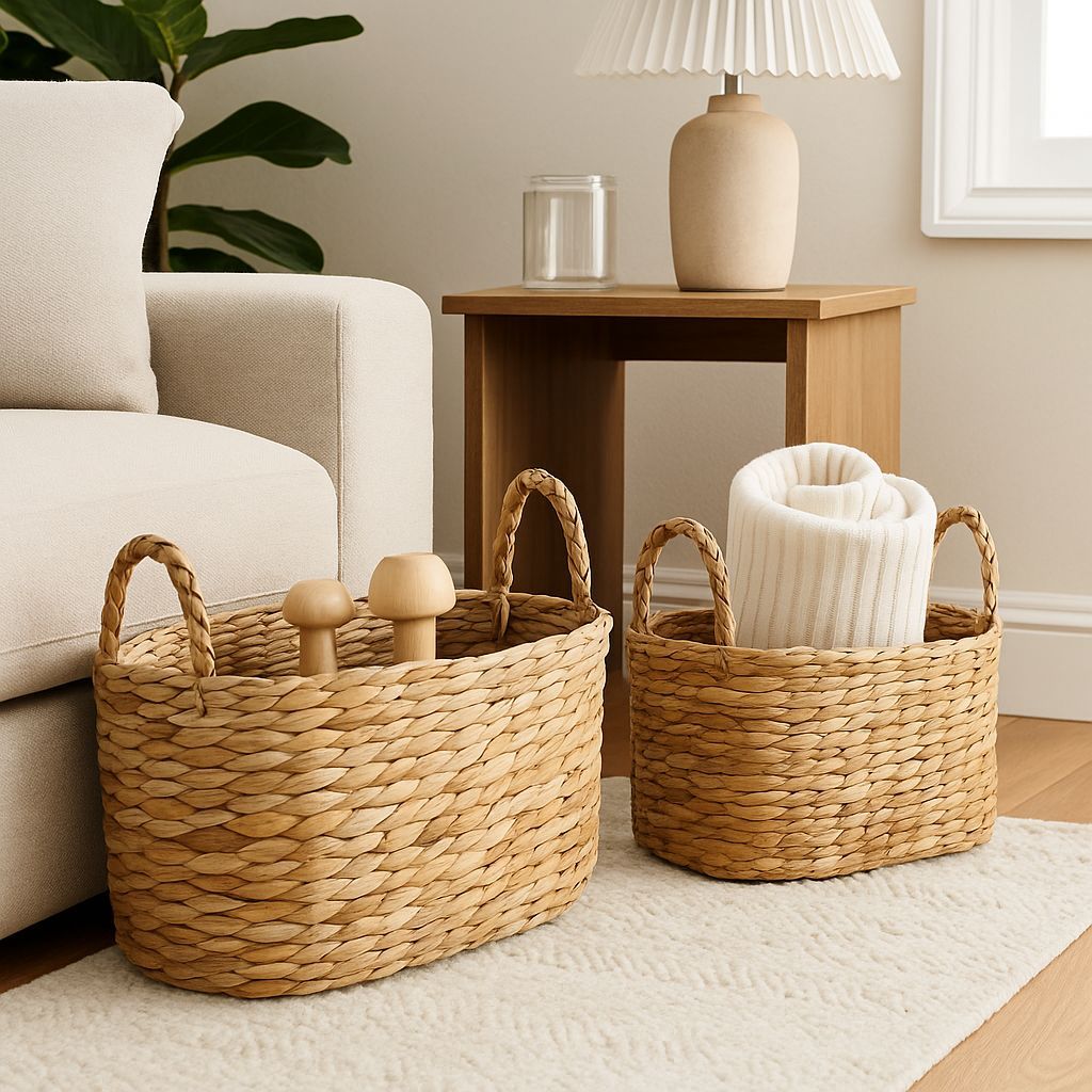 Cesto Organizador de Palha Natural Taboa com Alça – Kit 2 Unidades Rústico Artesanal Decorativo Multiuso para Banheiro S