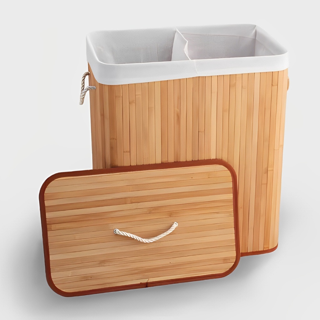 Cesto de Roupa Suja Bambu Duplo Com Tampa Cesto Grande Organizador Multiuso 60cm Cesto Retangular Forrado com Alça Brinquedo Quarto Banheiro Dobrável