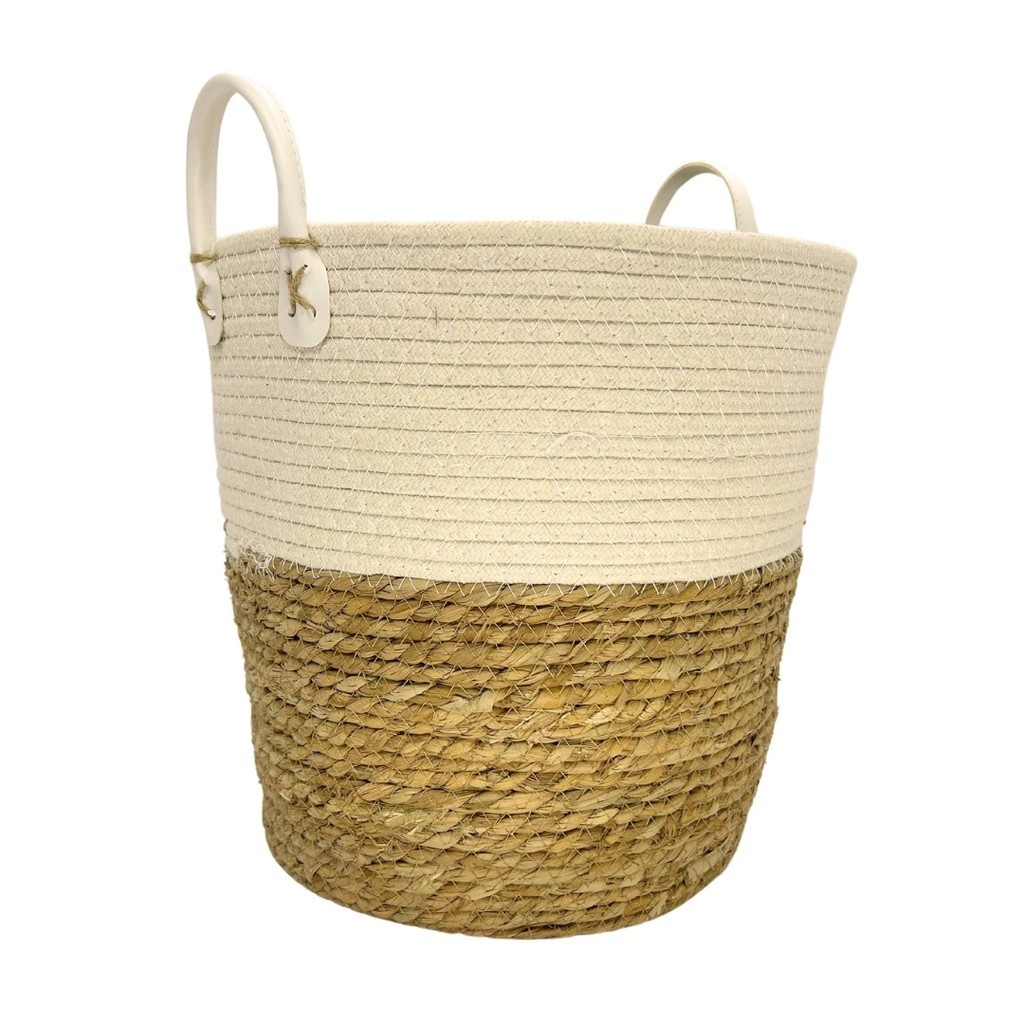 Cesto de Palha Fibra Natural Seagrass Redondo Cachepot Plantas Decorativo Organizador Médio C/ Alça