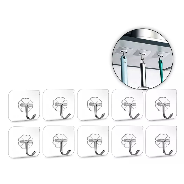 KIT 10 Gancho Adesivo De Parede Reutilizável Anti-Derrapante Sem Traço Para Cozinha De Banheiro