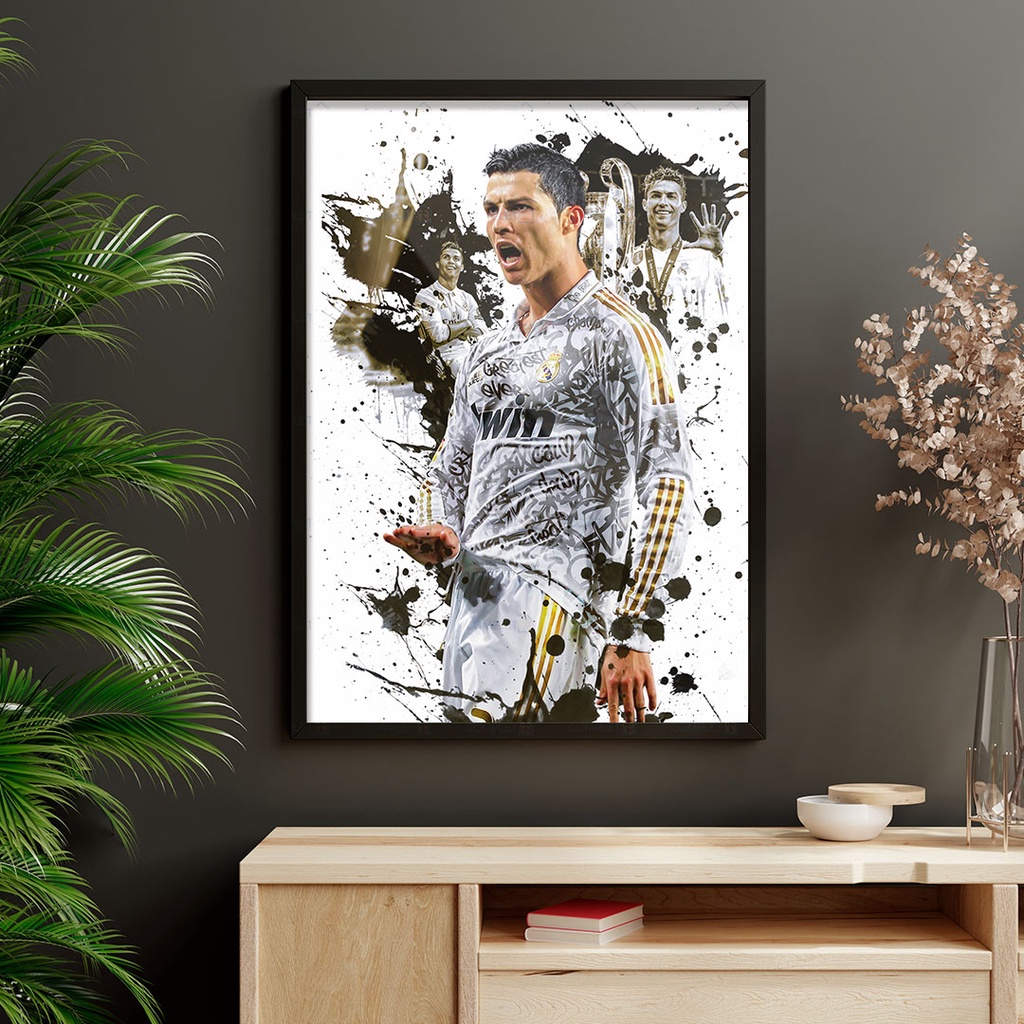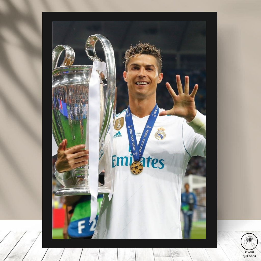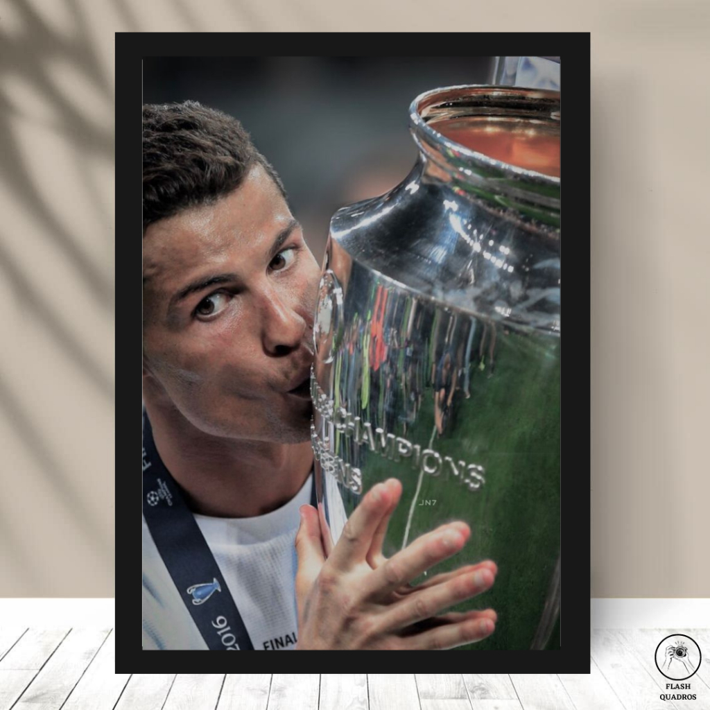 Quadro Cristiano Ronaldo Rei da Champions Moldura e Vidro