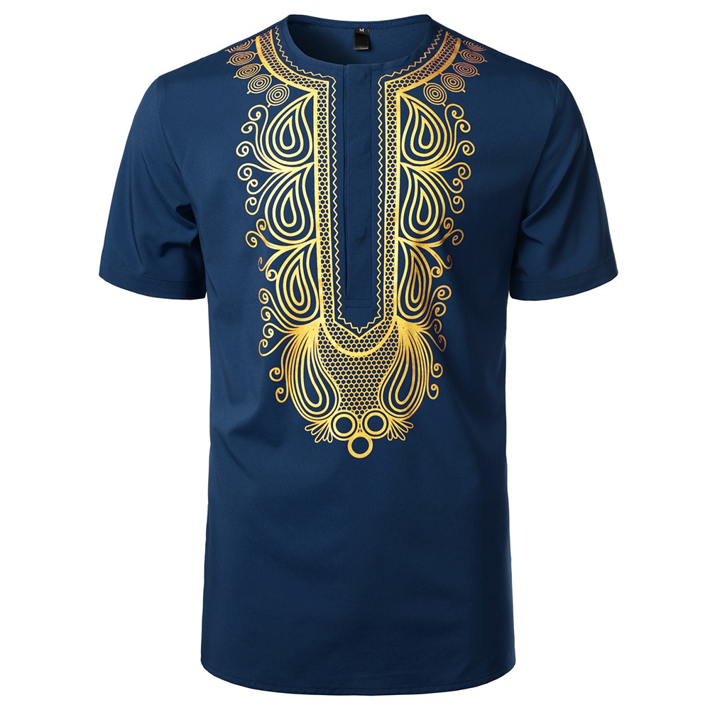Camisa De Moda Masculina Estilo Africano Ouro Estampagem 3d Casual Manga Curta Solta Camisetas De Tamanho Superior Para Camisola De Roupa