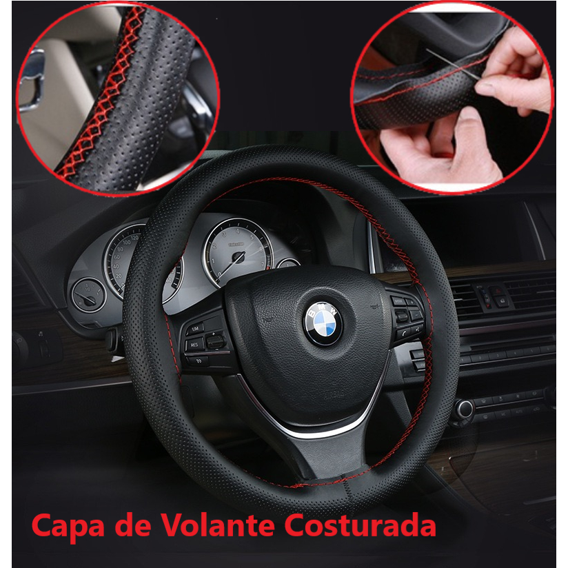 Capa de Volante Revestimento Automotivo em Couro Ecológico Costurado Textura Perfurado Diversas cores