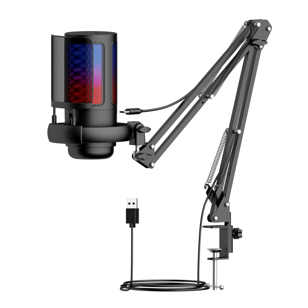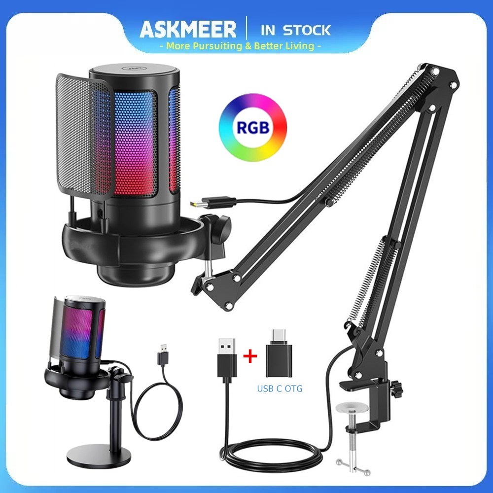 Microfone Condensador USB Para PC RGB Jogos Com Braço De Lança Mac/PS4/PS5 Mudo De Toque Streaming Podcasting YouTube