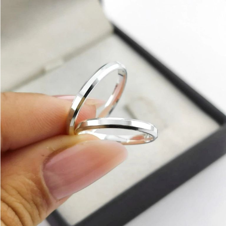 Par de alianças de namoro 2mm fina prata Original minimalista com anel solitario