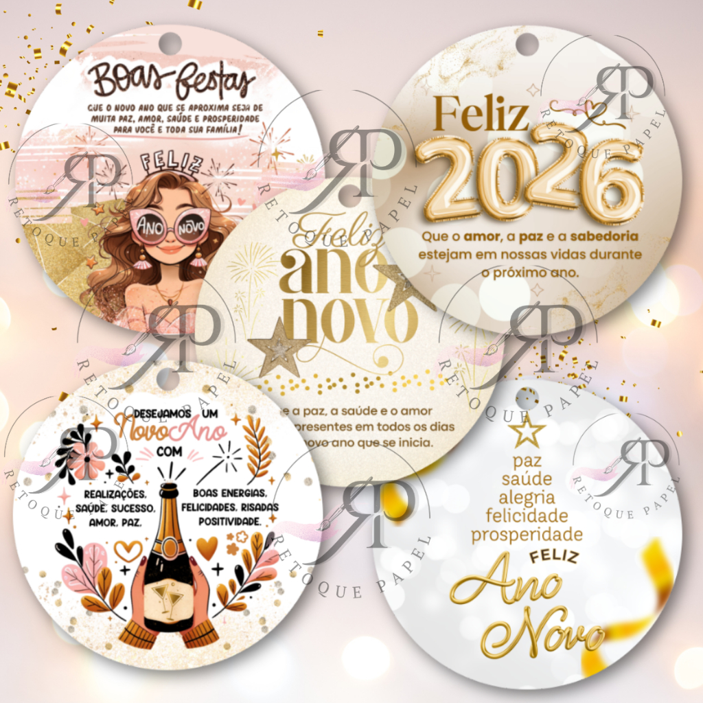 100 Cartões/mini tag ou adesivo - Feliz 2026/Boas Festas/Feliz Ano Novo/Adesivo 2026/Cartão Ano Novo