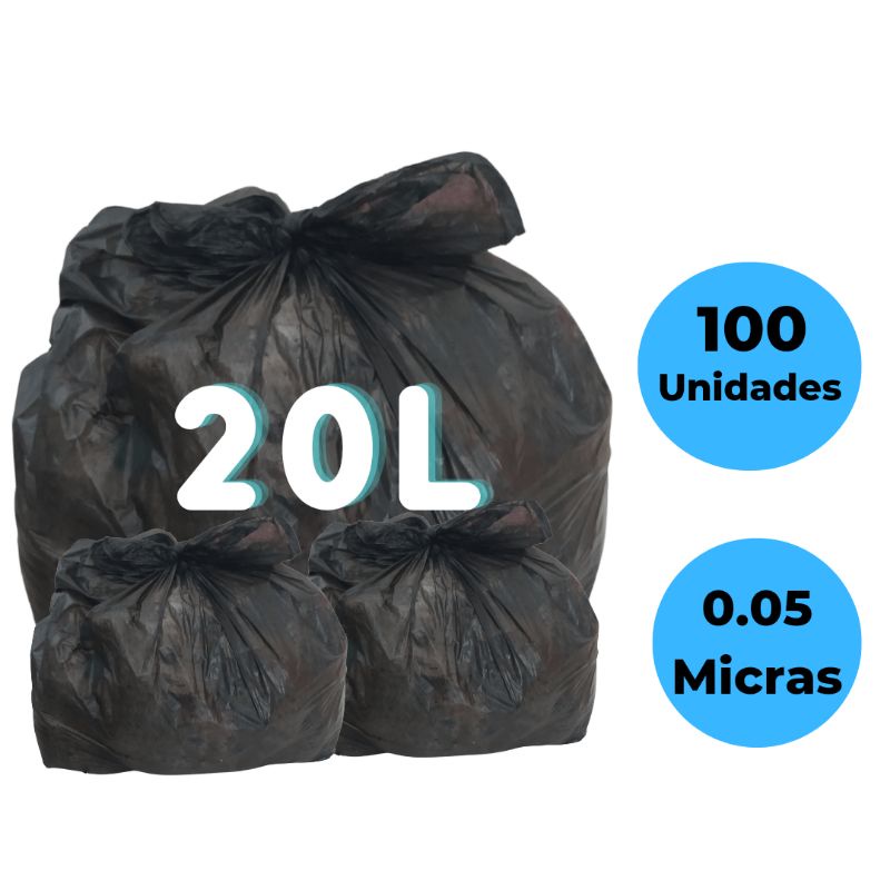 Saco De Lixo Preto 20 Litros - 100 Unidades Lixo Pia