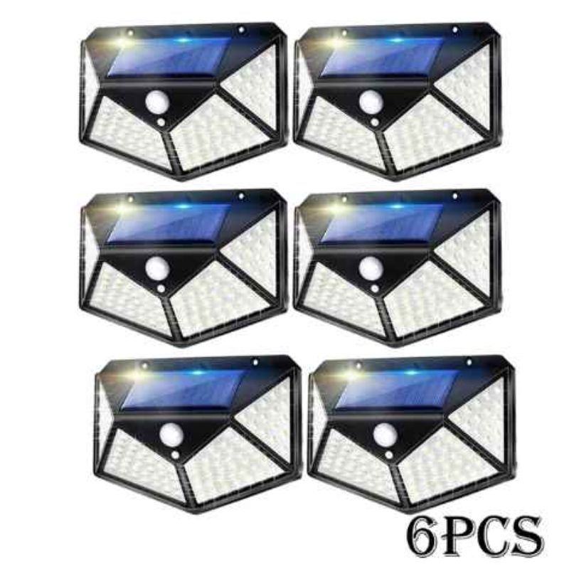 KIT6 Luminária Solar 100 Led Com Sensor Para Jardim Externa Prova D'água Luz Led Solar Lâmpada