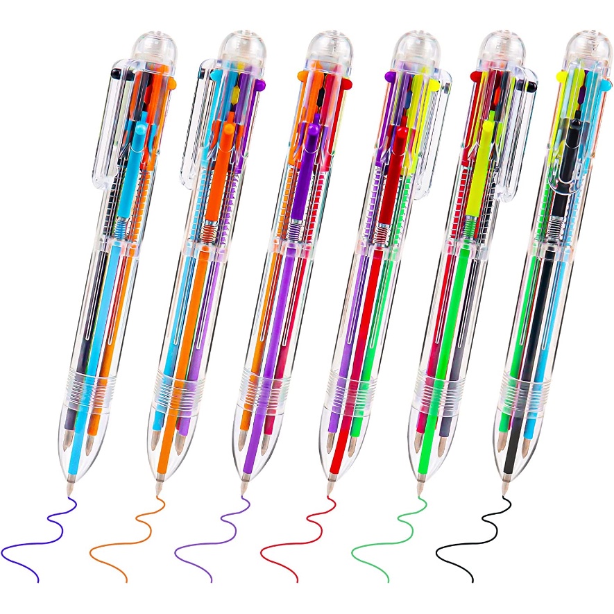 Pacote De 12 Pcs 0,5mm 6 Em 1 Caneta Esferográfica Multicolor , 6 Cores Material Escolar Retrátil Transparente Para Estudantes