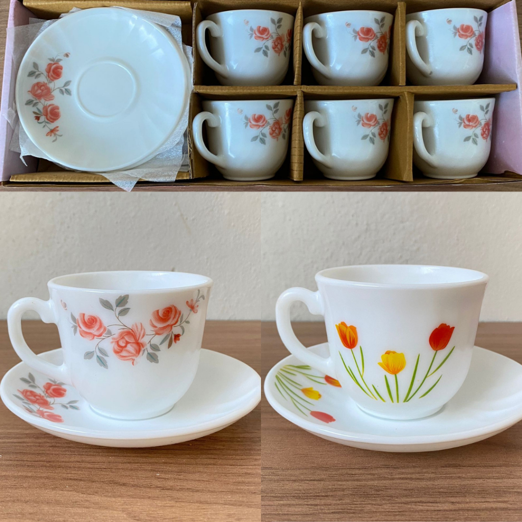 Jogo de xicara de chá com pires em vidro 12 peças - conjunto xicara Fratelli. 6 xicaras e 6 pires