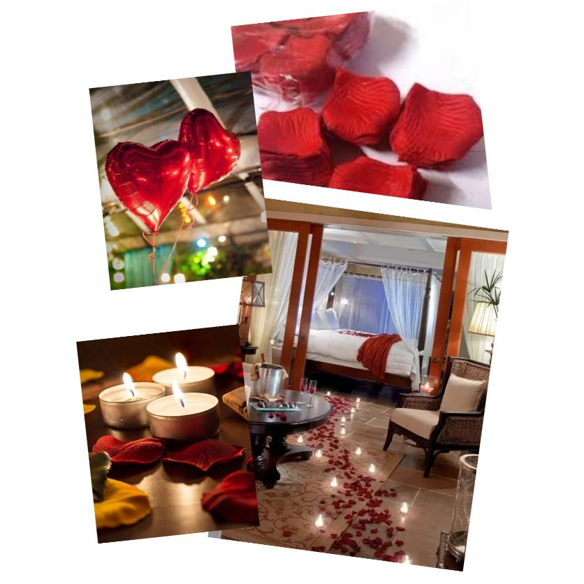 Kit Dia dos Namorados C/ 300 pétalas de rosas + 4 balões de coração + 6 velas | Surpresa romântica