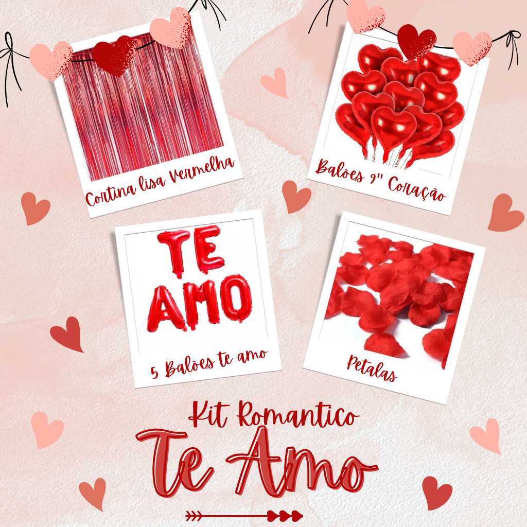 Kit Decoração Romantico Balões Te amo Pétalas Cortina Balões Coração Dia dos Namorados Mães amor
