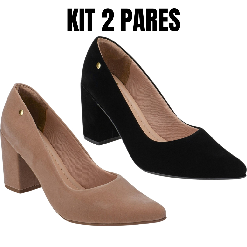 Kit 2 Pares Sapato Feminino Scarpin Bico Fino Retro Conforto Salto Alto 8CM Macio