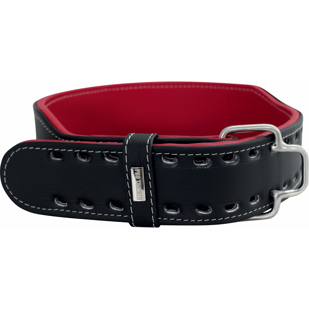 Cinturão de Couro Academia Musculação Fitness Fivela - Preto / Vermelho