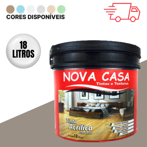 Tinta Acrílica Econômica para Parede Nova Casa 18 KG - Alto Rendimento, Diversas Cores