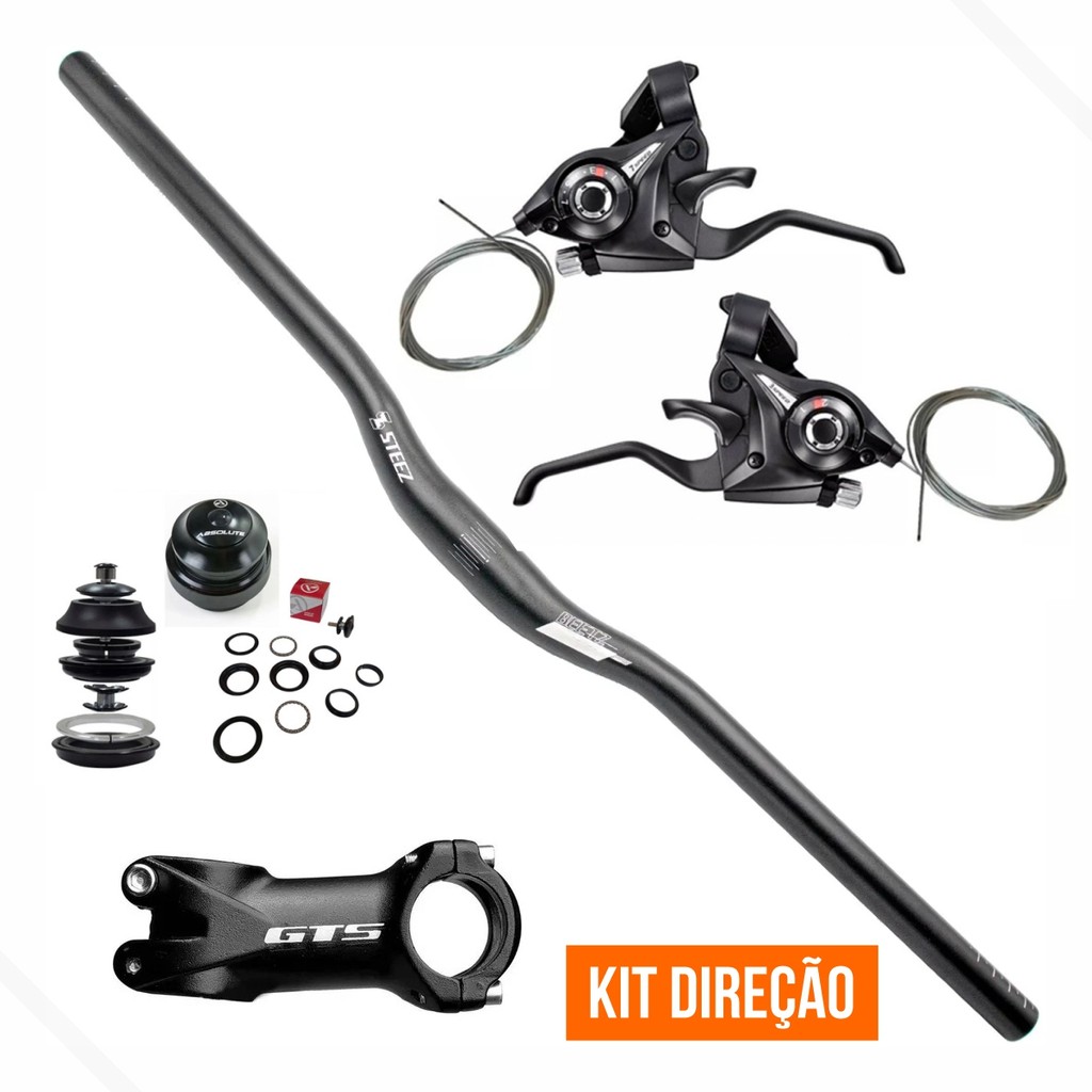 Kit Guidão Bicicleta + Suporte Mesa e Caixa de Direção + Passador Alavanca Rapid Fire 21V 3x7v GTS