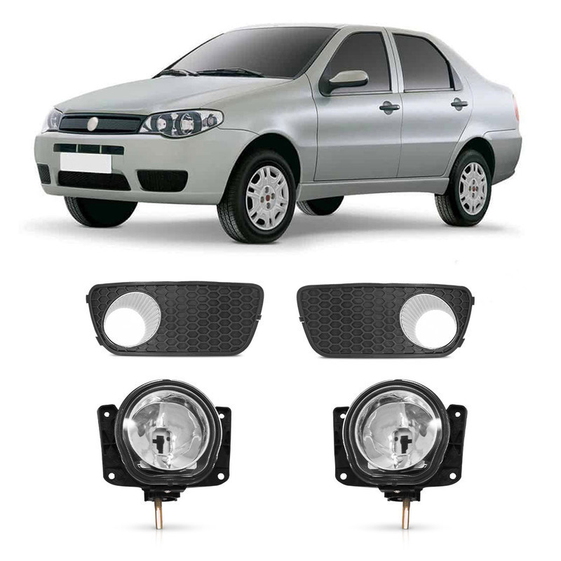 Kit Siena G3 2004 2005 2006 2007 2008 2009 2010 Par Grade do Milha C/Furo + Par Farol de Milha