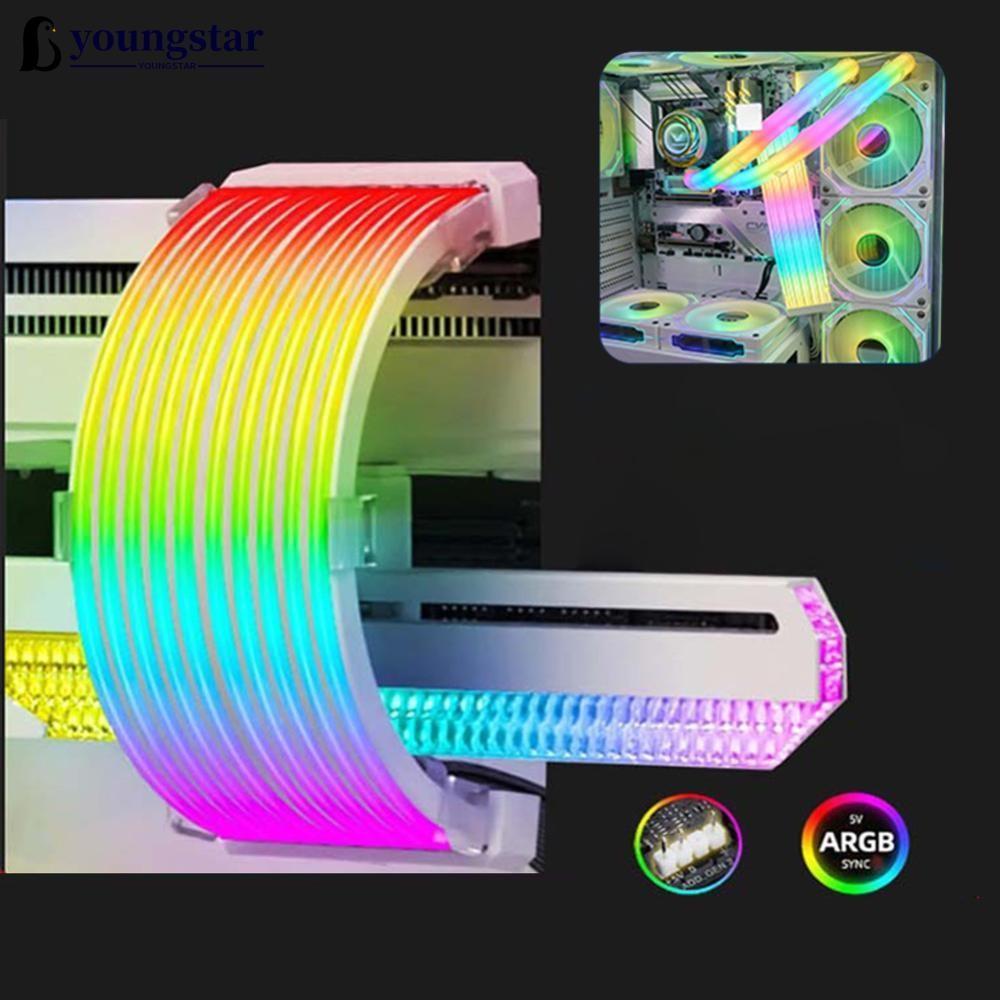 YOUNGSTAR Flexível RGB LED Barra De Tira Luz ARGB Placa Capa Para Fonte Alimentação Do Computador ATX 24PIN GPU Cabos Ví