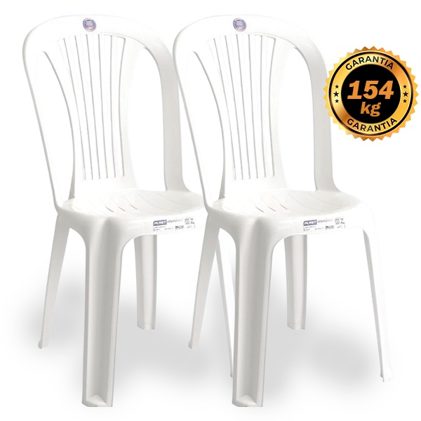 Kit Cadeira Plástica Branca Bistrô resistente Garantia 154kg Kit