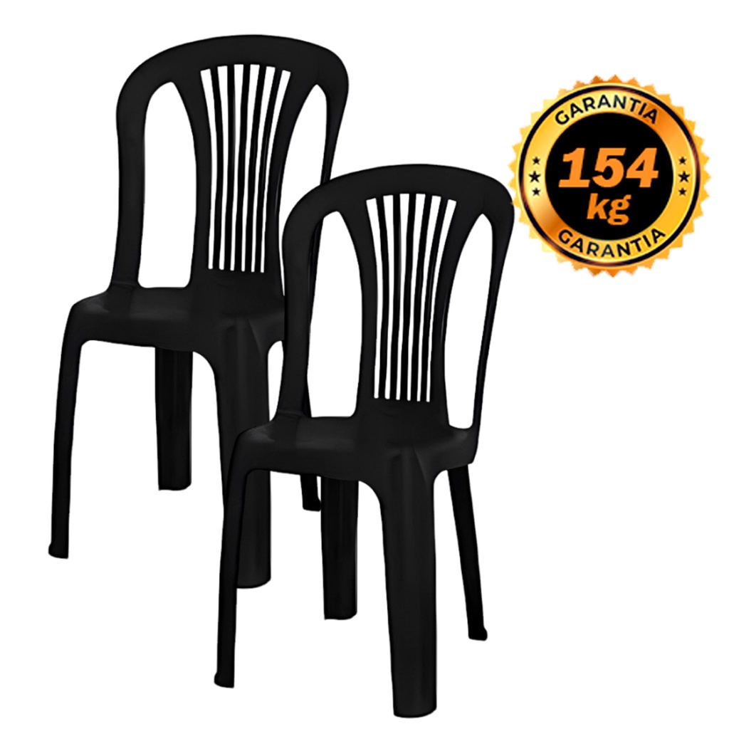 Kit Cadeira Plástica Preta Bistrô resistente Garantia 154kg Kit