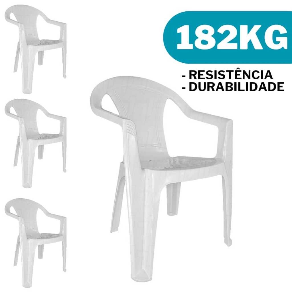 4 Cadeira Poltrona de Plástico c/ Braço Resistente 182kg Branca