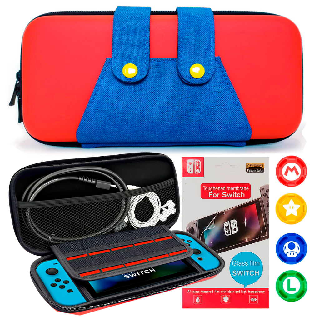 Kit Case Premium Capa Bolsa Nintendo Switch V1 V2 Oled Estojo Transporte Proteção + Película + Grips Analógico Mario