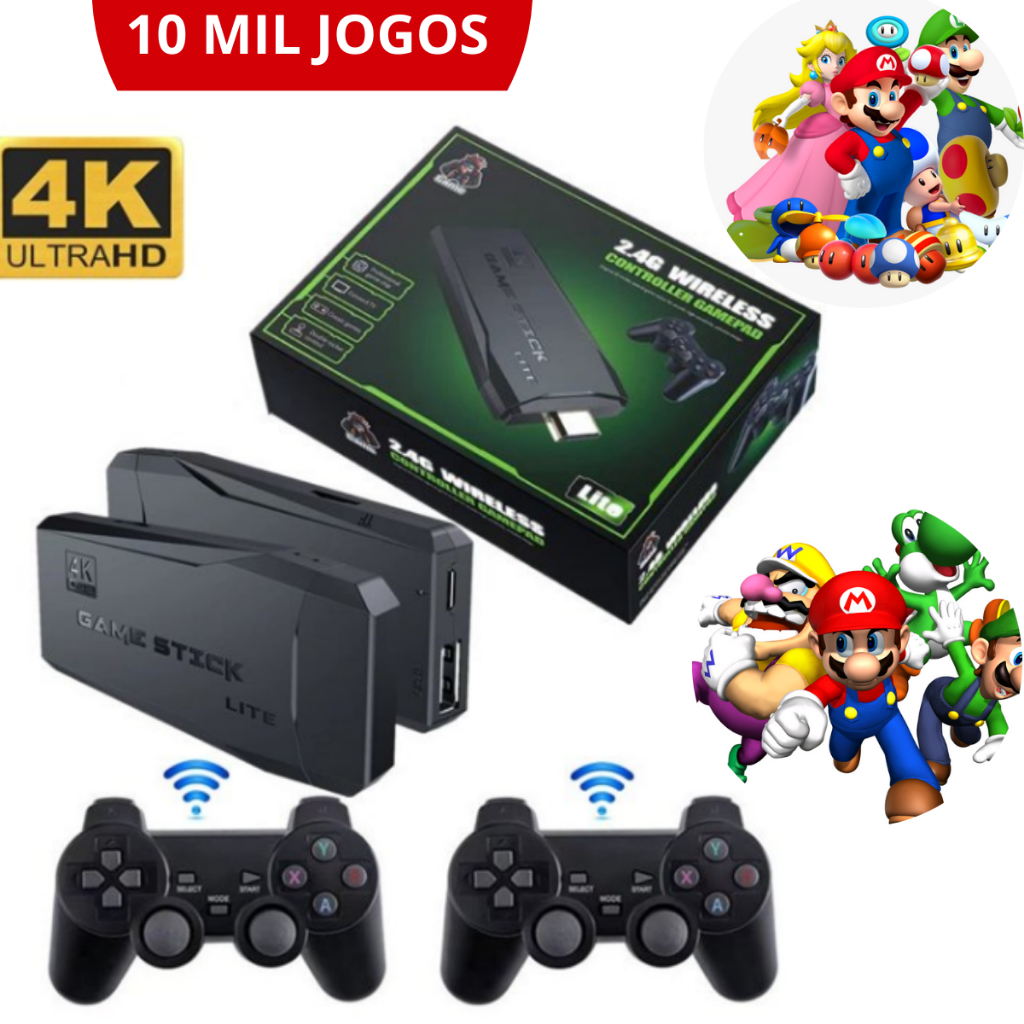Vídeo Game Stick Retrô 10 mil Jogos C/ 2 Controles 2.4g Sem Fio