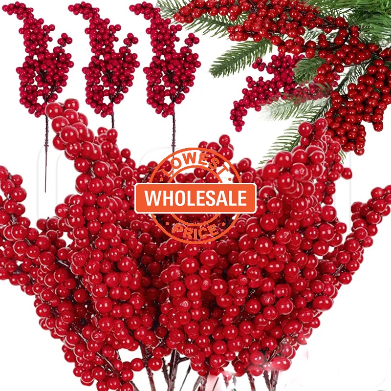 [Árvore De Natal Decorações De Espuma Artificial Bagas Vermelhas/Grinaldas De Pinheiro De Bricolage Ramos Emulacionais De/Festa De Ano Novo Mesa De Jantar Falsas Mini Flores Ornamento