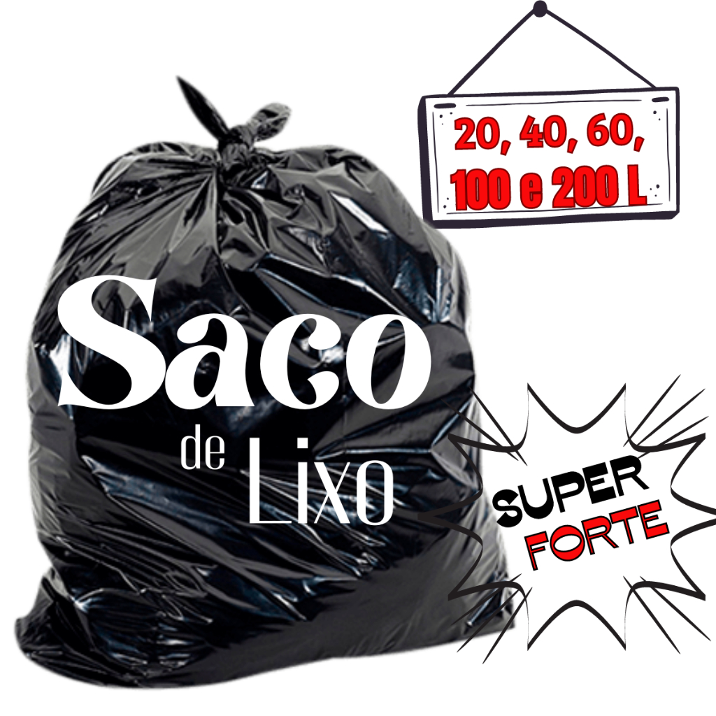 Sacos de Lixo Reforçados 20, 40, 60, 100 e 200 Litros Saco Preto para Limpeza Pesada