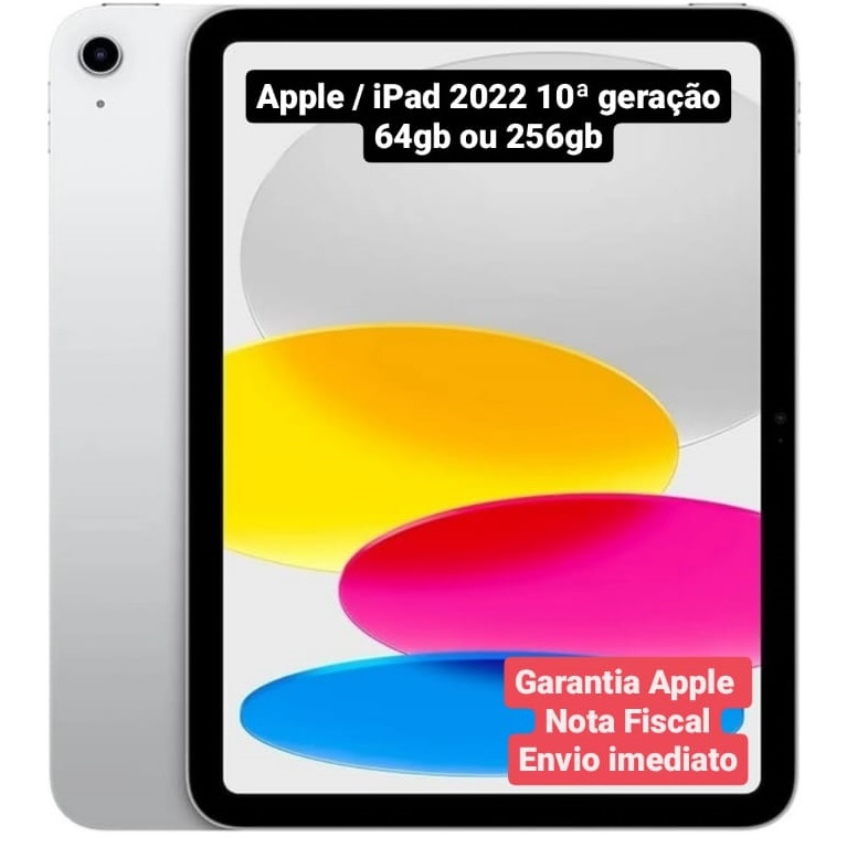 Apple iPad 2022 10.9 Wi-Fi 10ª geração Prata, Rosa, Azul e Amarelo 64GB ou 256GB Nfe Envio Imediato