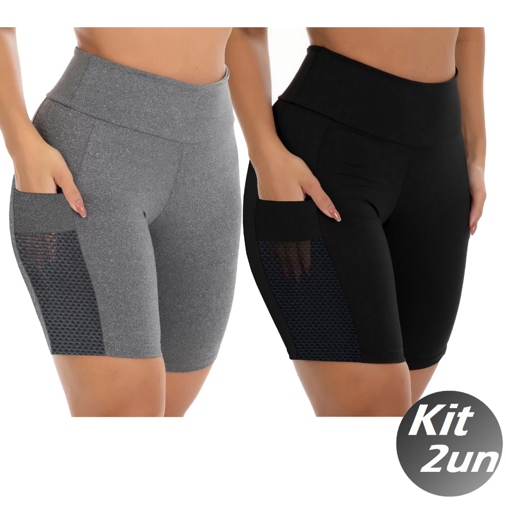 Kit 2 Short Bermuda com Bolso Fitness Feminino Cós alto Academia