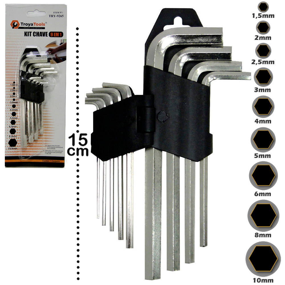 Jogo Kit 9 Peças Chave Allen Curta - Longa De 1,5 A 10mm MTX