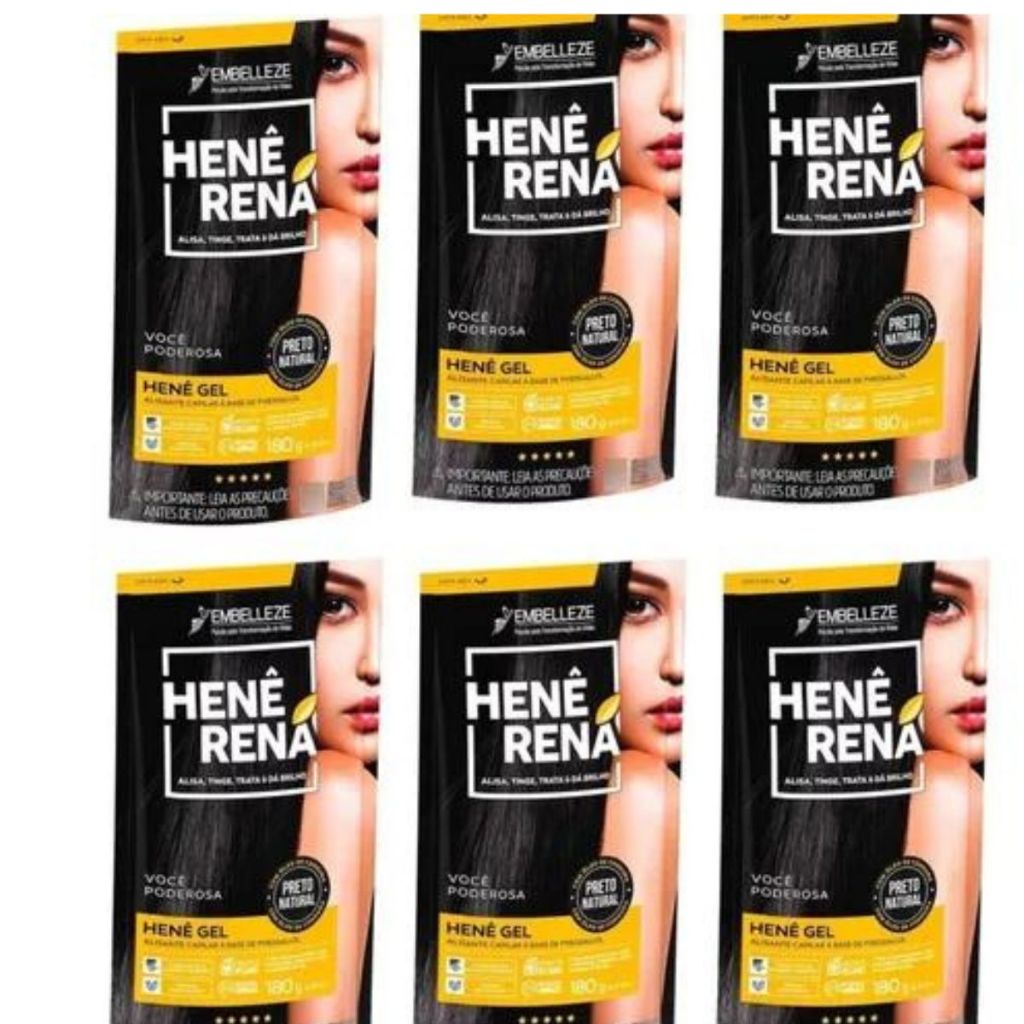 Henê Rena Preto Natural Pouch Embelleze - 6 Unidades