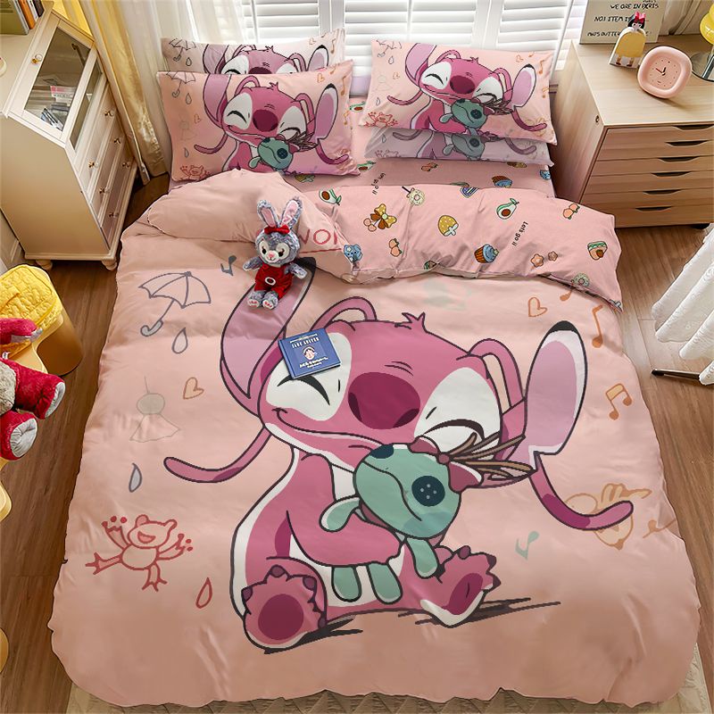 FAWZIYA Disney Cute Cartoon Stitch Bedding Set-Lençol De Algodão De Verão , Capa Quilt , Dormitório Estudantil Conjunto De 3 Peças