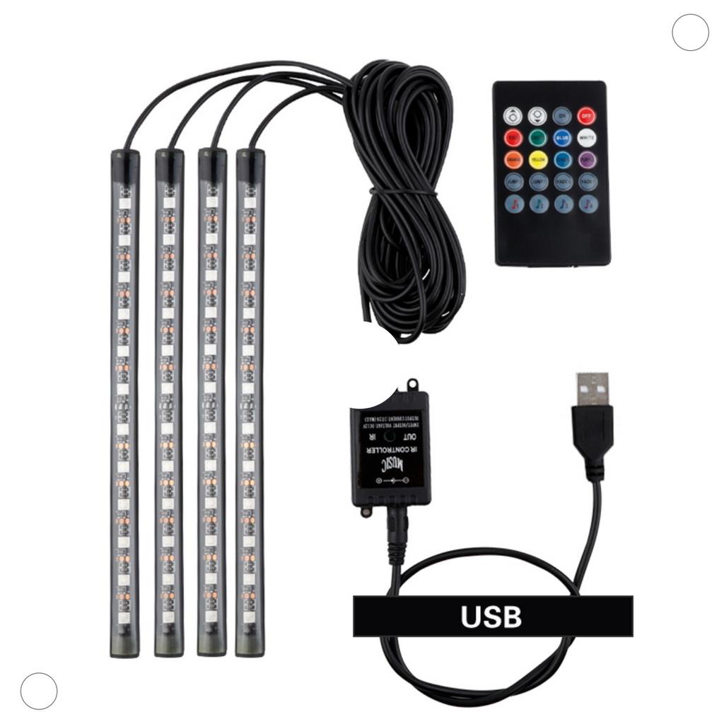 Luz De Atmosfera LED RGB para Interior Do Carro USB 9 LED ou 12 LED
