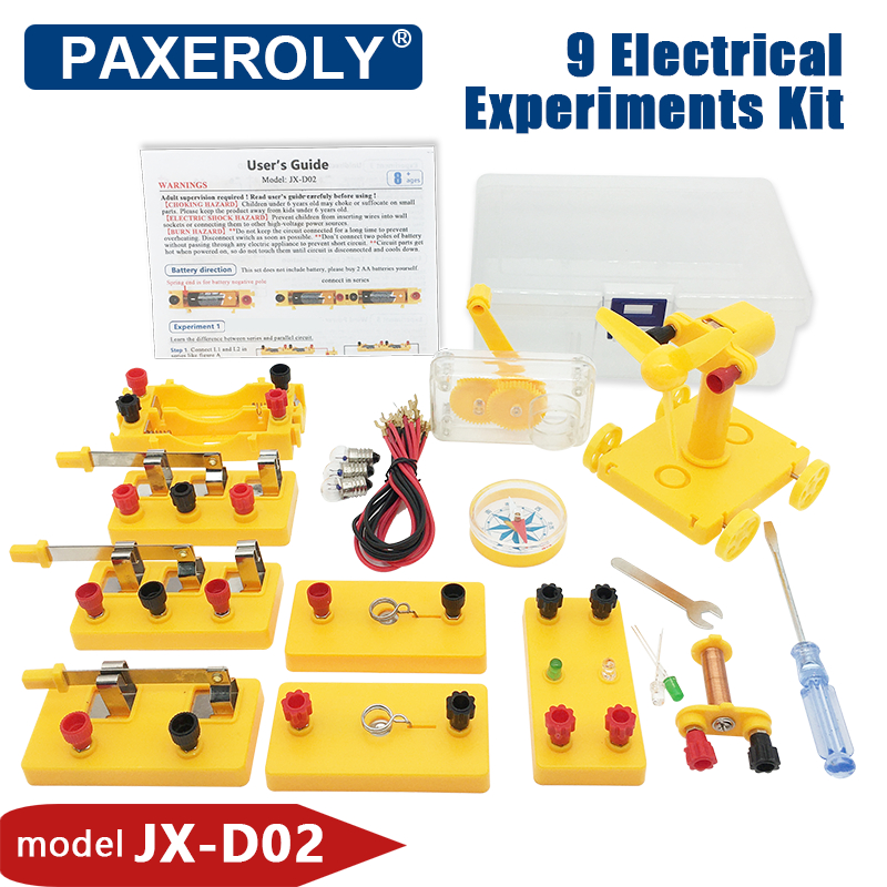 9 Kit De Experimentos Elétricos De Física Circuito Elétrico Gerador Manual Motor Eletroímã Energia Eólica Carro LED Luz