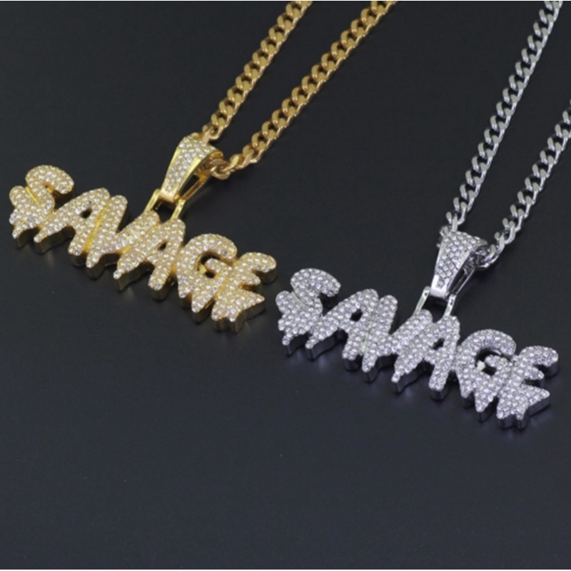 Colar De Hip Hop Latão Ouro Correntes Micro Pavimento Zircônio Cúbico SAVAGE Pingente De Encanto Para Homens